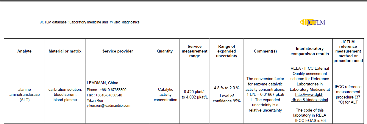 喜讯!开云(中国)医学参考实验室正式进入JCTLM参考测量服务实验室数据库