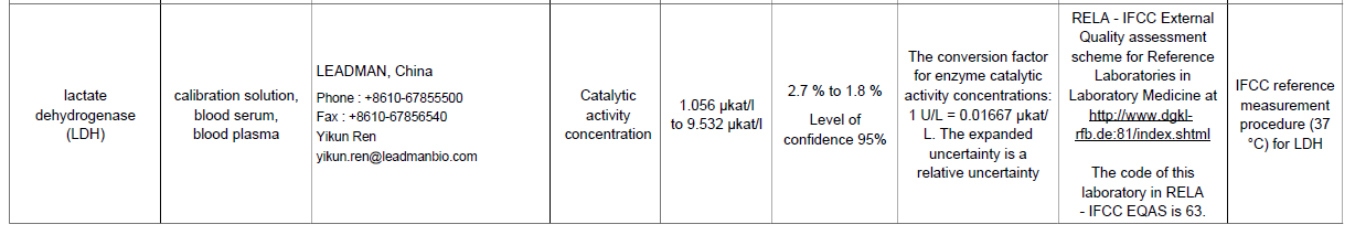 2021年,进入JCTLM参考测量服务实验室数据库